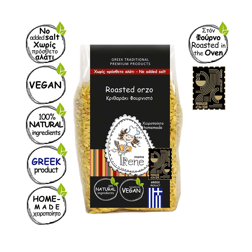 Κριθαράκι φουρνιστό χειροποίητο. Ένα κριθαράκι μοναδικό! Φουρνίζετε αργά ώστε να αποκτήσει μια πιο ιδιαίτερη ξεροψημένη γεύση που μόνο αν το δοκιμάσετε θα καταλάβετε τη διαφορά. Περασμένο μέσα από χάλκινα καλούπια, κρατάει την τέλεια πορώδη επιφάνεια ώστε να συγκρατεί κάθε είδος σάλτσας.