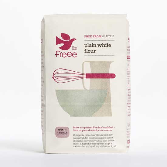 Μείγμα Λευκών Αλεύρων Γενικής Χρήσης Χωρίς Γλουτένη. Μείγμα λευκών αλεύρων γενικής χρήσης χωρίς γλουτένη και σιτάρι, από ρύζι, πατάτα, ταπιόκα, καλαμπόκι και φαγόπυρο, για όλες τις χρήσεις. Είναι ιδανικό για όσους ακολουθούν δίαιτα χωρίς γλουτένη και σιτάρι ή για όσους αναζητούν μια υγιεινή εναλλακτική λύση για αλεύρι από σιτάρι. Κατάλληλο για χορτοφάγους και vegans. Όλα τα άλευρα της Doves Farm δεν υπόκεινται σε επεξεργασία λεύκανσης.
